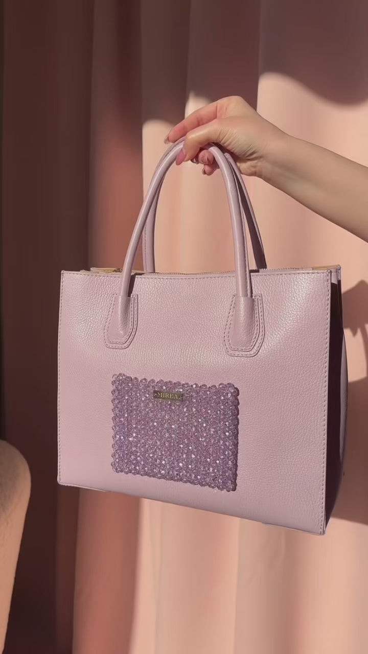 Daisy è la tote bag che unisce l’anima pratica di una borsa capiente all’eleganza luminosa di una tasca gioiello in vetro cristallo, intrecciata a mano.